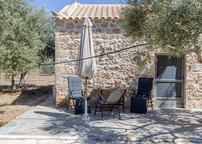 Eetgelegenheden zijn onder andere een eethoek buiten, compleet met koffie- en theevoorzieningen. Self-catering ter plaatse omvat ook een koelkast, een oven en keukengerei. De luchthaven Kalamata Captain Vassilis Constantakopoulos ligt op 165 km afstand van de 1-badkamer villa.